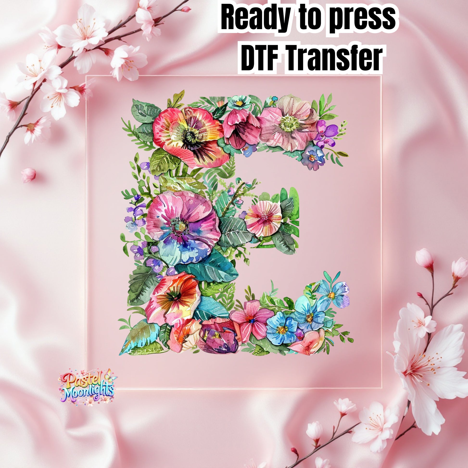 Flower Letter Design E DTF Print Ready to Press